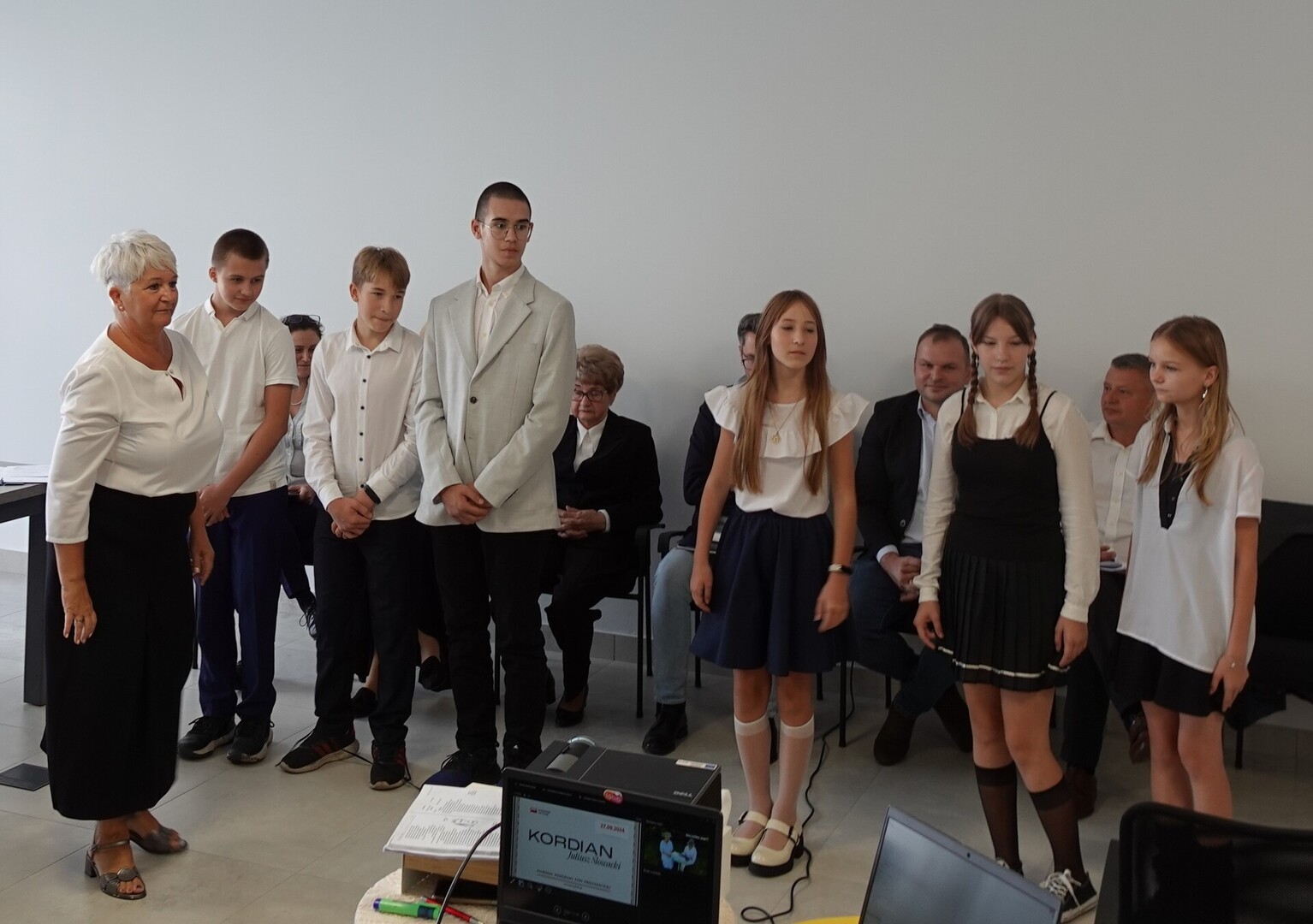 27 września 2024 r. w sali konferencyjnej nowo otwartego Gminnego Centrum Kultury i Usług Społecznych w Drużbicach miała miejsce kolejna odsłona Narodowego Czytania. To już piąta edycja tego wydarzenia organizowana przez Gminną Bibliotekę w Drużbicach i kolejna, w której uczestniczyli nasi uczniowie. Tym razem zaproszeni goście czytali fragmenty „Kordiana” Juliusza Słowackiego. Wśród czytających znalazły się nauczycielki naszej szkoły p. Edyta Sikora i p. Elżbieta Urban oraz emerytowana polonistka p. Jadwiga Trajdos. Chętni uczniowie wzięli udział w przygotowanym przez organizatorów konkursie i pokazali, że w spotkaniu uczestniczyli uważnie, a przekazywane treści nie były aż tak trudne. Wizyta w nowym centrum była też okazją do zwiedzenia przestronnych pomieszczeń biblioteki, która od kilku dni ma tam swoją siedzibę.