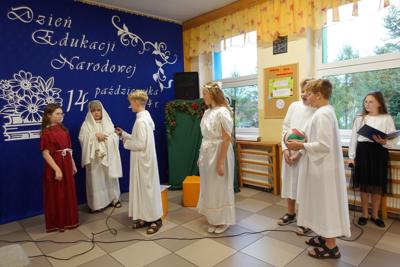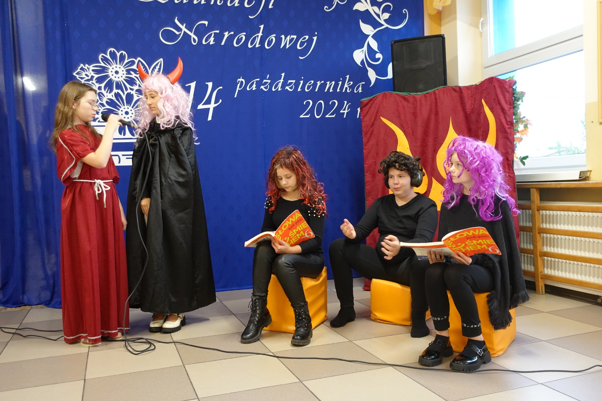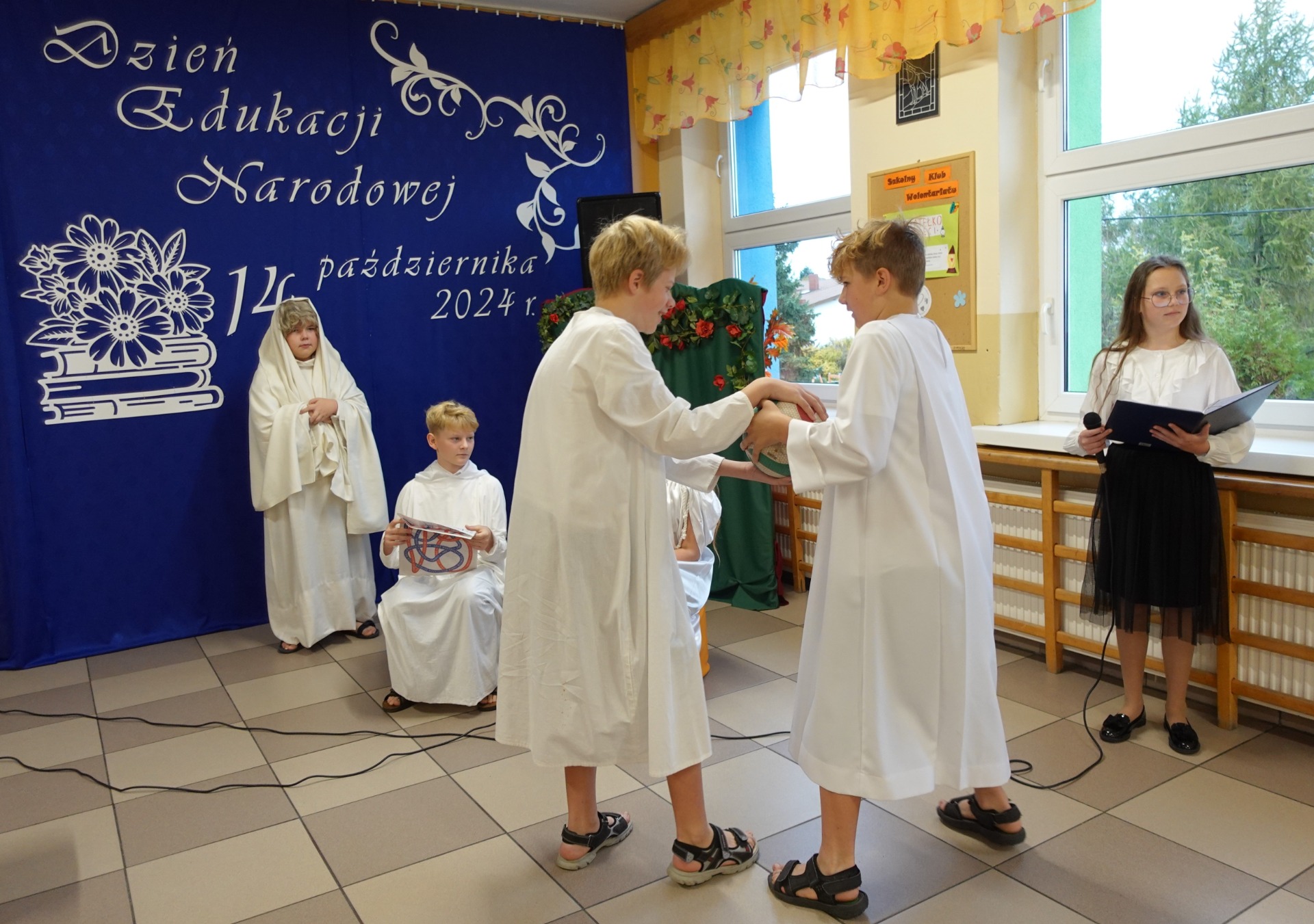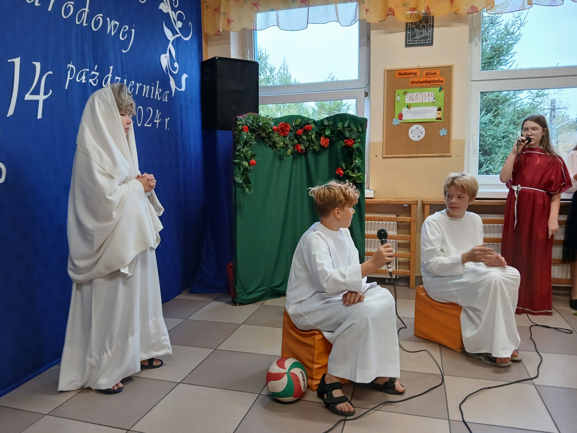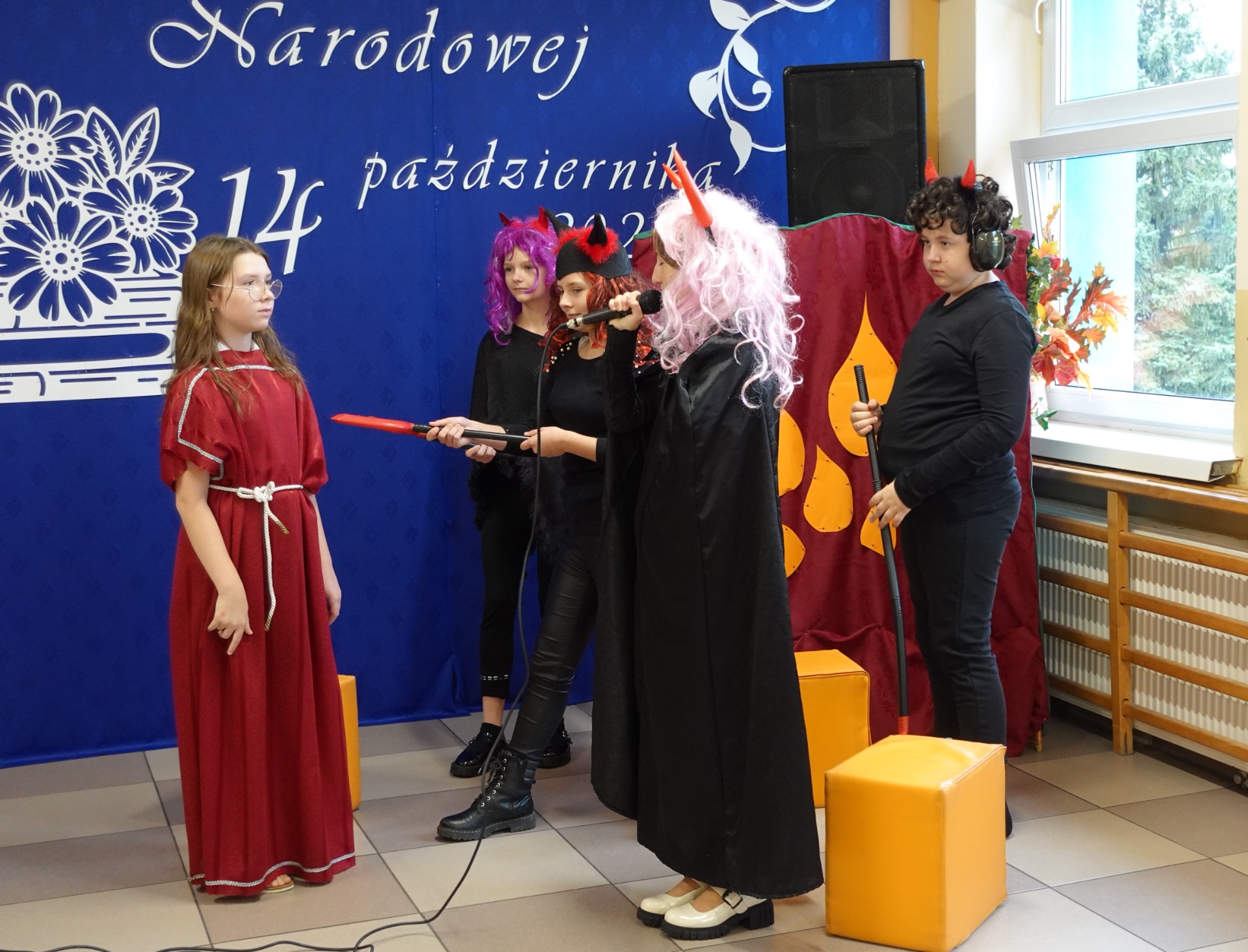 Dzień Edukacji Narodowej to święto polskiej szkoły – nauczycieli, uczniów oraz pracowników administracji i obsługi. Z tej okazji uczniowie klasy VI zaprezentowali humorystyczny program, który wywołał uśmiech na twarzach wszystkich zgromadzonych i pozwolił oderwać się od codziennych trosk szkolnego życia. Dziękujemy naszym nauczycielom oraz pracownikom niepedagogicznym za codzienny trud, który sprawia, że szkoła jest miejscem, w którym uczniom rosną skrzydła.