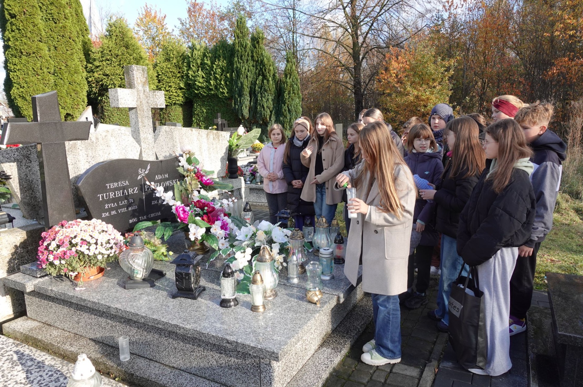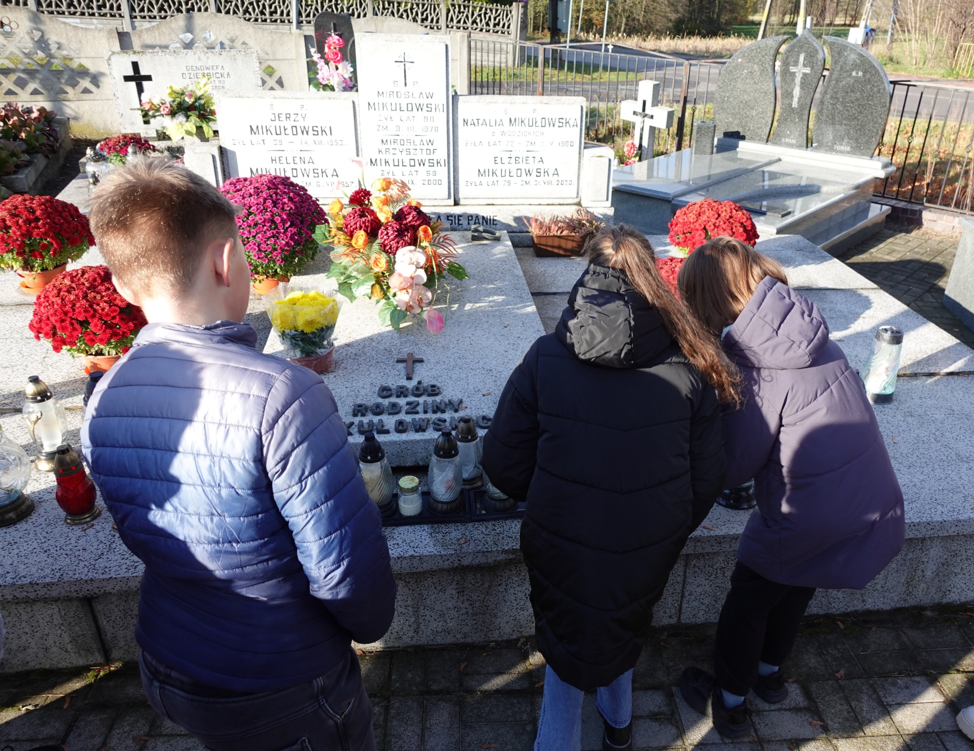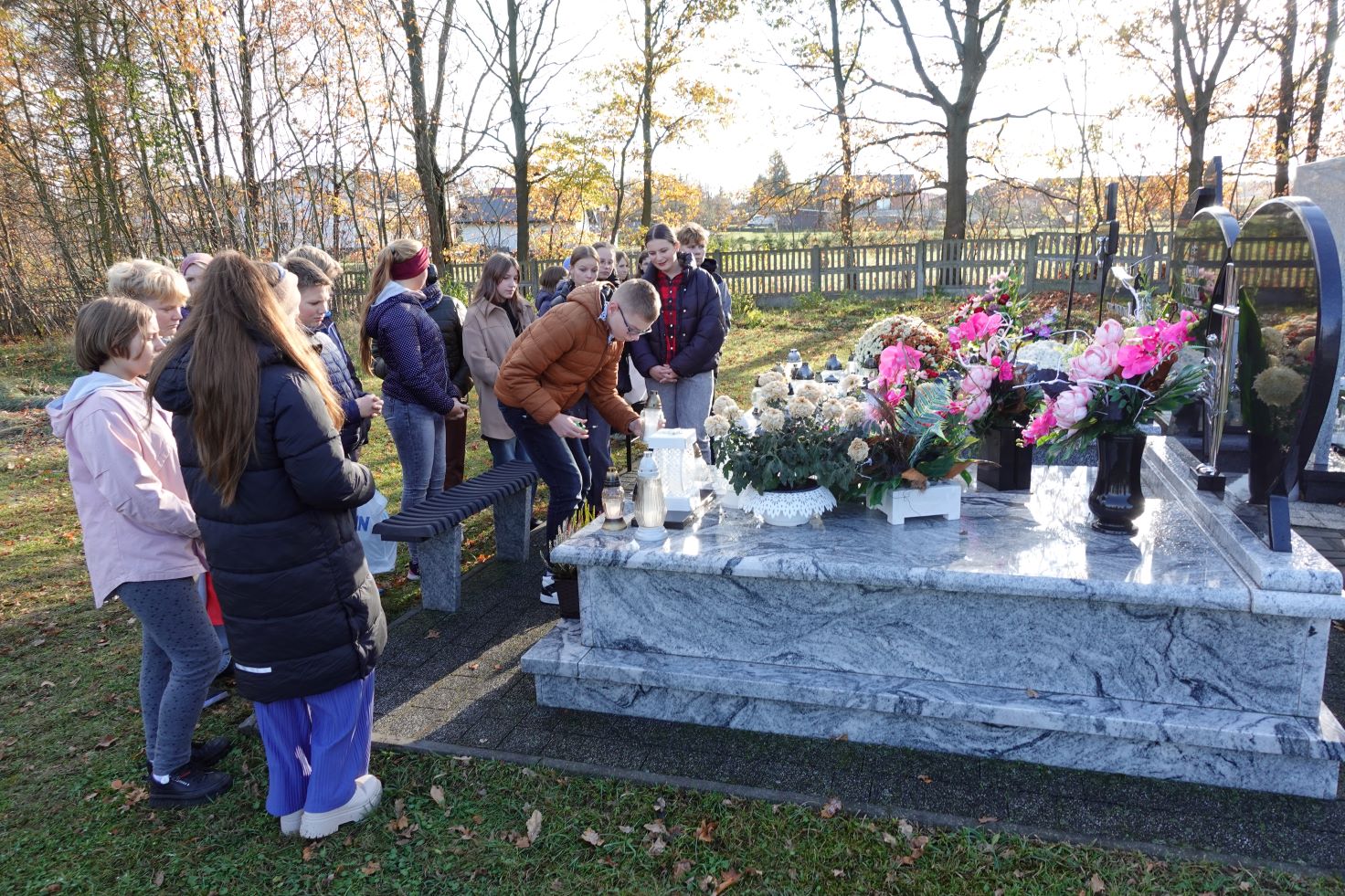 "Światełko pamięci" to akcja kultywowana w naszej placówce od kilku lat. Po Święcie Zmarłych szkolni wolontariusze udali się na cmentarz w Drużbicach, aby w imieniu społeczności szkolnej zapalić znicze na mogiłach nieżyjących nauczycieli, innych pracowników szkoły oraz poległych żołnierzy.