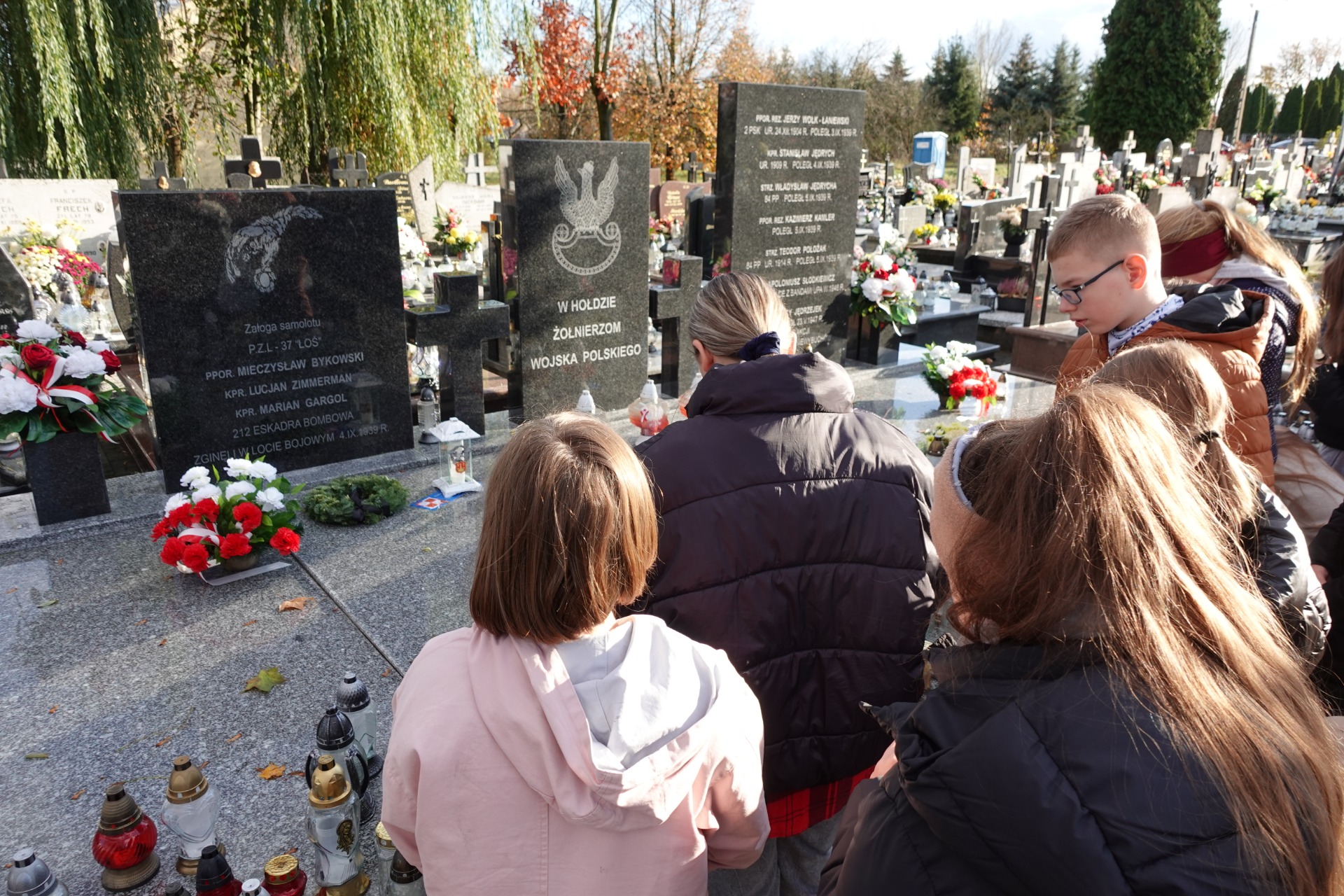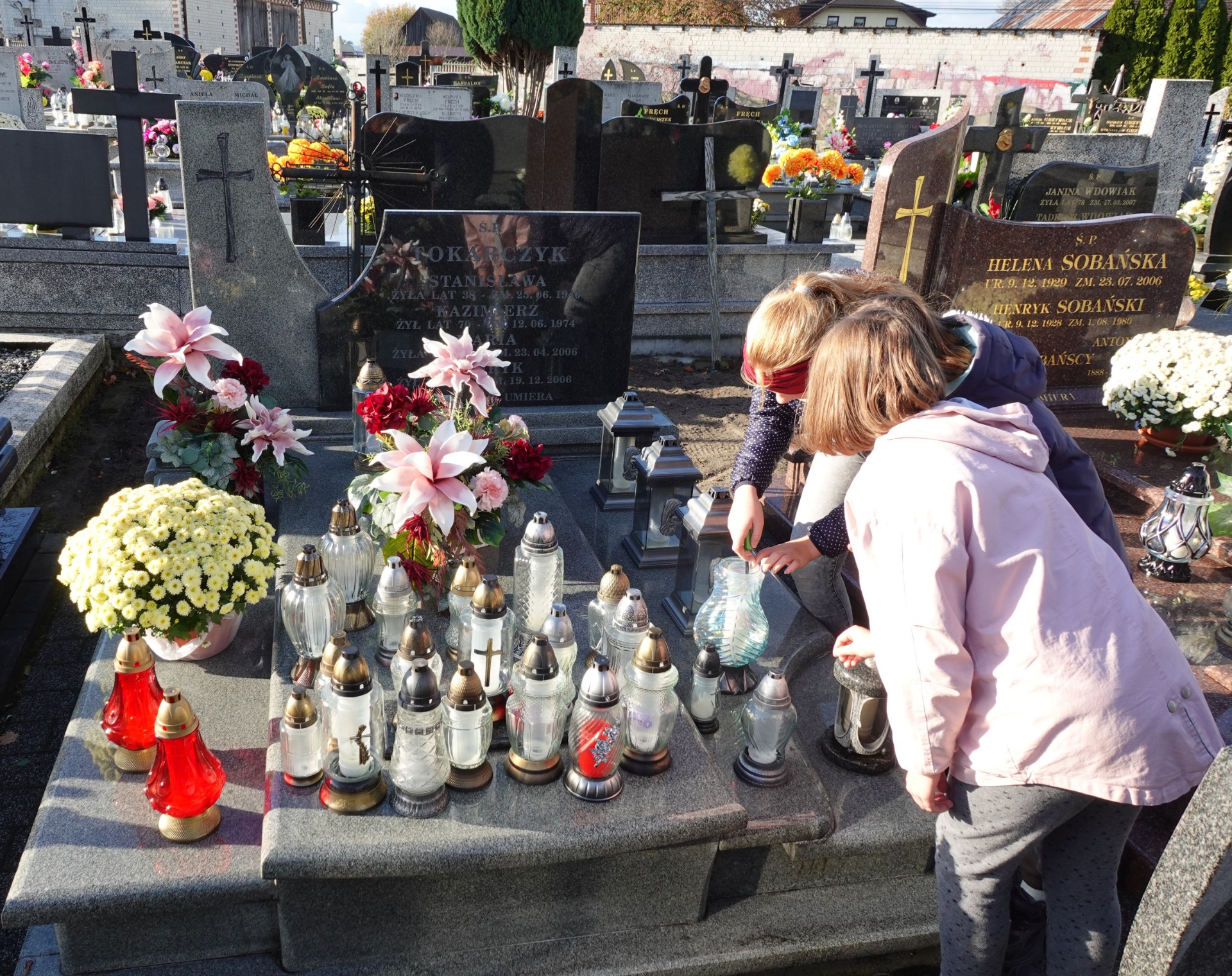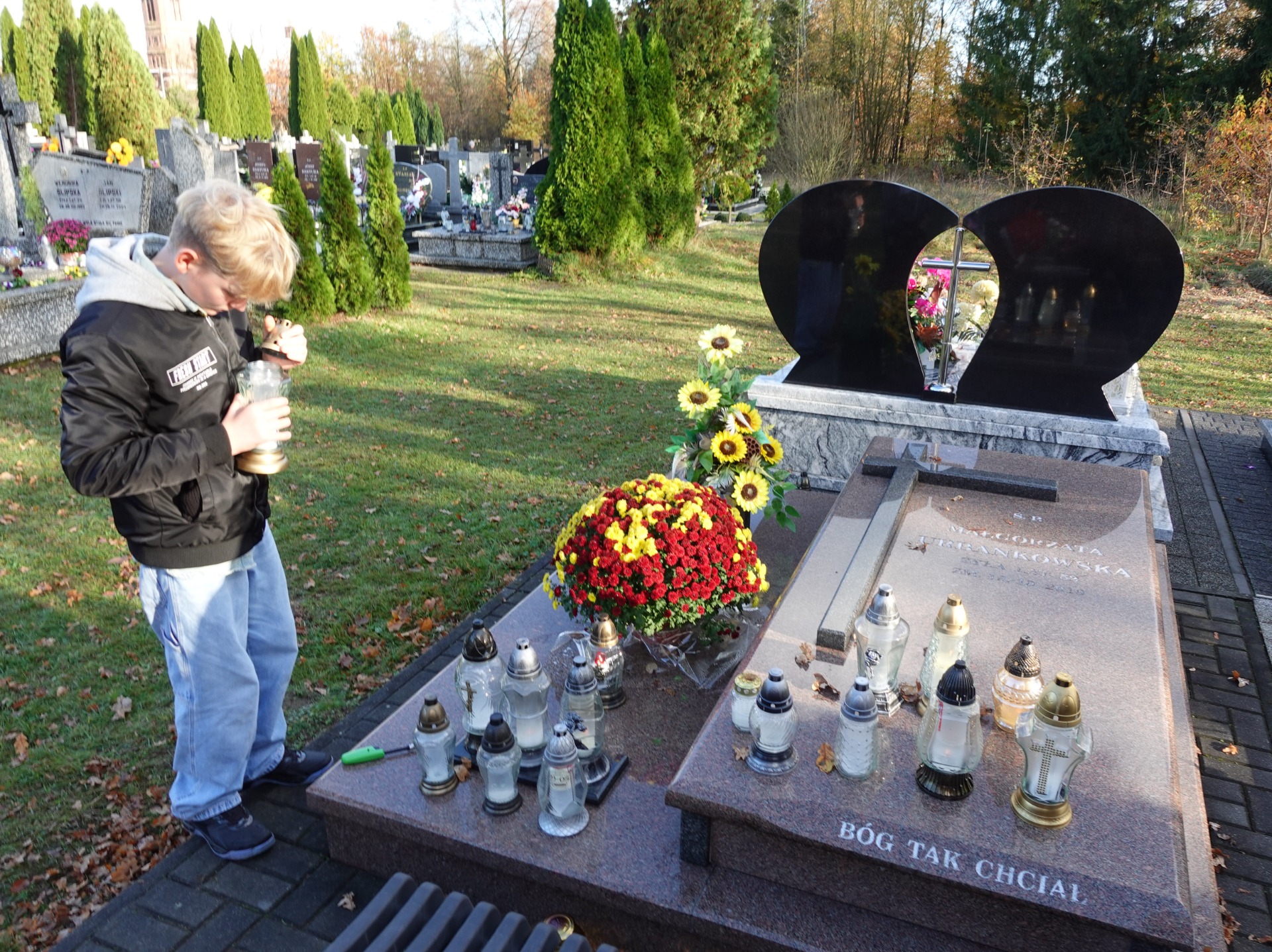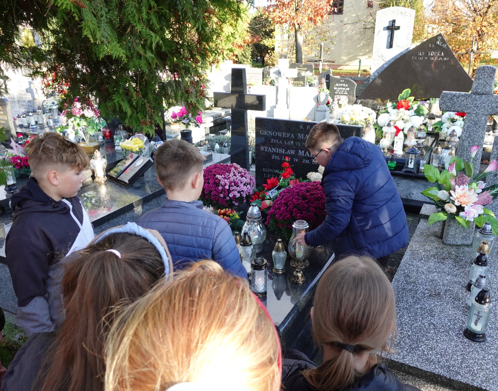 "Światełko pamięci" to akcja kultywowana w naszej placówce od kilku lat. Po Święcie Zmarłych szkolni wolontariusze udali się na cmentarz w Drużbicach, aby w imieniu społeczności szkolnej zapalić znicze na mogiłach nieżyjących nauczycieli, innych pracowników szkoły oraz poległych żołnierzy.