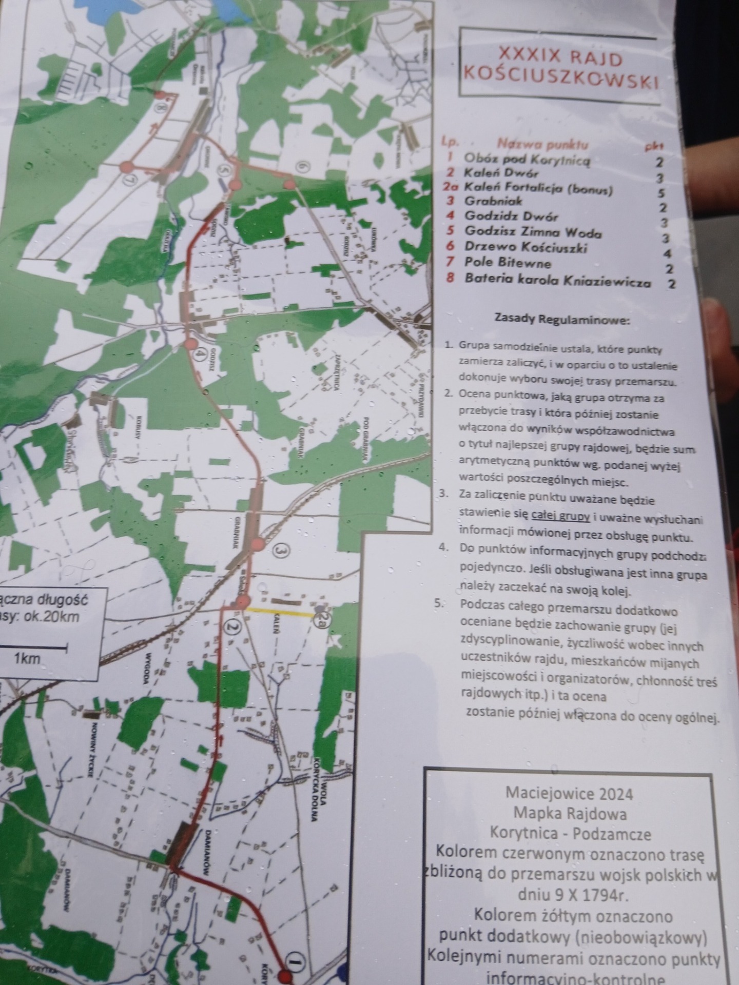 11 października uczniowie klasy V i VI oraz dwie uczennice z klasy VII pod opieką p. Moniki Stachurskiej oraz p. Elżbiety Urban uczestniczyli w XXXIX Rajdzie Kościuszkowskim. Nasi uczniowie dzielnie pokonali pieszo wyznaczoną trasę z Korytnicy do Podzamcza. Szlak liczył 20 km i wiódł drogami zbliżonymi do historycznego przemarszu wojsk polskich biorących udział w bitwie pod Maciejowicami 10 października 1794 r. Udział w rajdzie był żywą lekcją historii połączoną z grą terenową. W wyznaczonych 8 punktach kontrolnych uczniowie wykonywali różne zadania i poszerzali wiedzę na temat historii bitwy pod Maciejowicami. Zebrane punkty zagwarantowały drużynie naszej szkoły II miejsce.