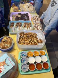 2, 4 i 5 grudnia to dni kolejnego już szkolnego kiermaszu charytatywnego „Gwiazdka dla Adriana”. Uczniowie klas IV-VIII rozprowadzali przygotowane przez siebie różnorodne, kolorowe i bardzo smaczne przekąski. Poza tym Hania, Weronika i Natalia z klasy VI oferowały stworzone przez siebie ozdoby: bransoletki, breloczki i kolczyki. Na przygotowanym przez dziewczęta stoisku można też było złożyć biżuterię samodzielnie. Z naszymi smakołykami odwiedziliśmy też Gminne Centrum Kultury i Usług Społecznych w Drużbicach oraz urząd gminy.