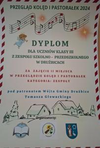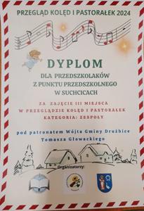 W kategorii ZESPOŁY II miejsce wyśpiewali uczniowie klasy III przygotowani przez wychowawczynię p. M. Stępczyńską, a III przyznano przedszkolakom z Suchcic, które do występu przygotowały wychowawczynie p. K. Gajewska i p. A. Pankiewicz.