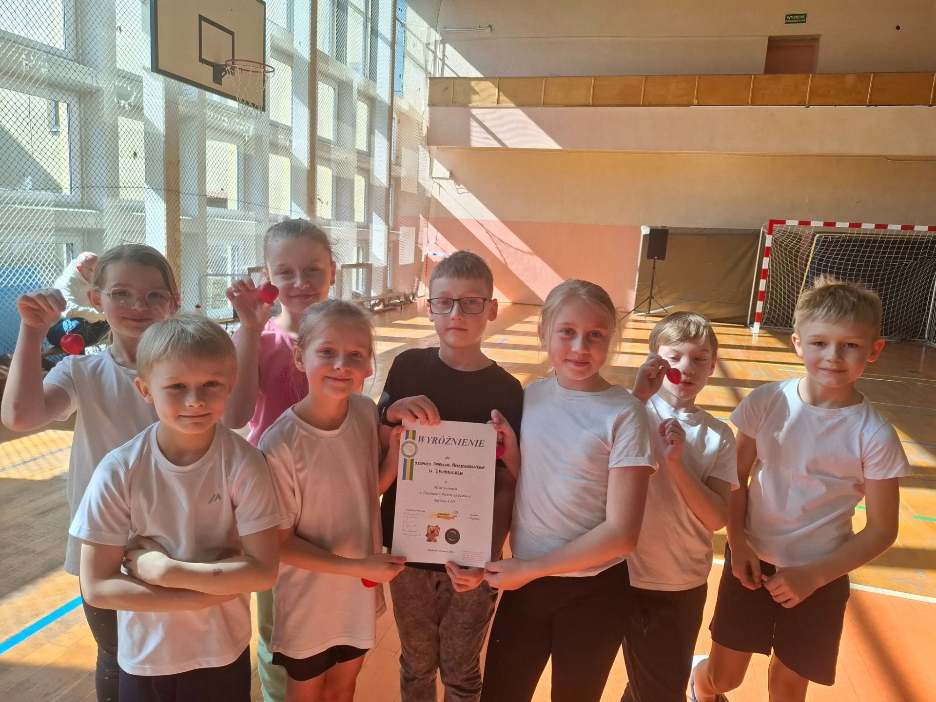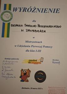 20 marca uczniowie klas I -III w składzie: Nela Kowalska, Tadeusz Szadkowski, Filip Sujka, Natalia Oset, Gabriela Baraniak, Lena Niepsuj, Filip Młynarczyk i Jakub Komuński reprezentowali naszą szkołę w Mistrzostwach w Udzielaniu Pierwszej Pomocy dla klas I - III. Mistrzostwa składały się z 2 etapów: testu wiedzy z zakresu pierwszej pomocy oraz zawodów sportowych, w tym prawidłowego udzielania pierwszej pomocy poszkodowanemu.
