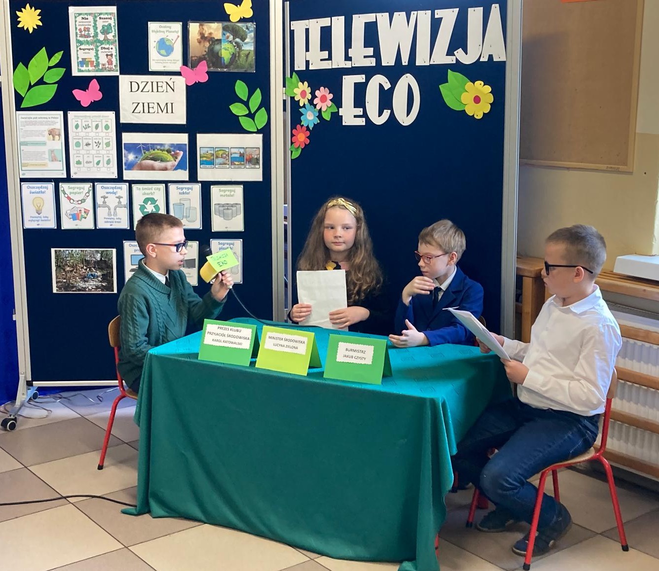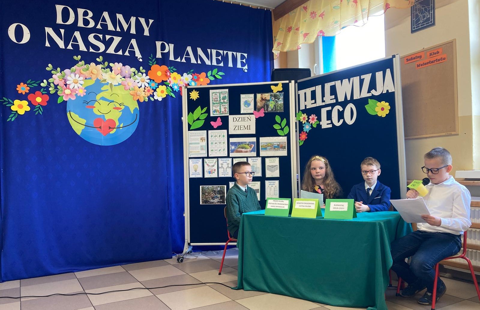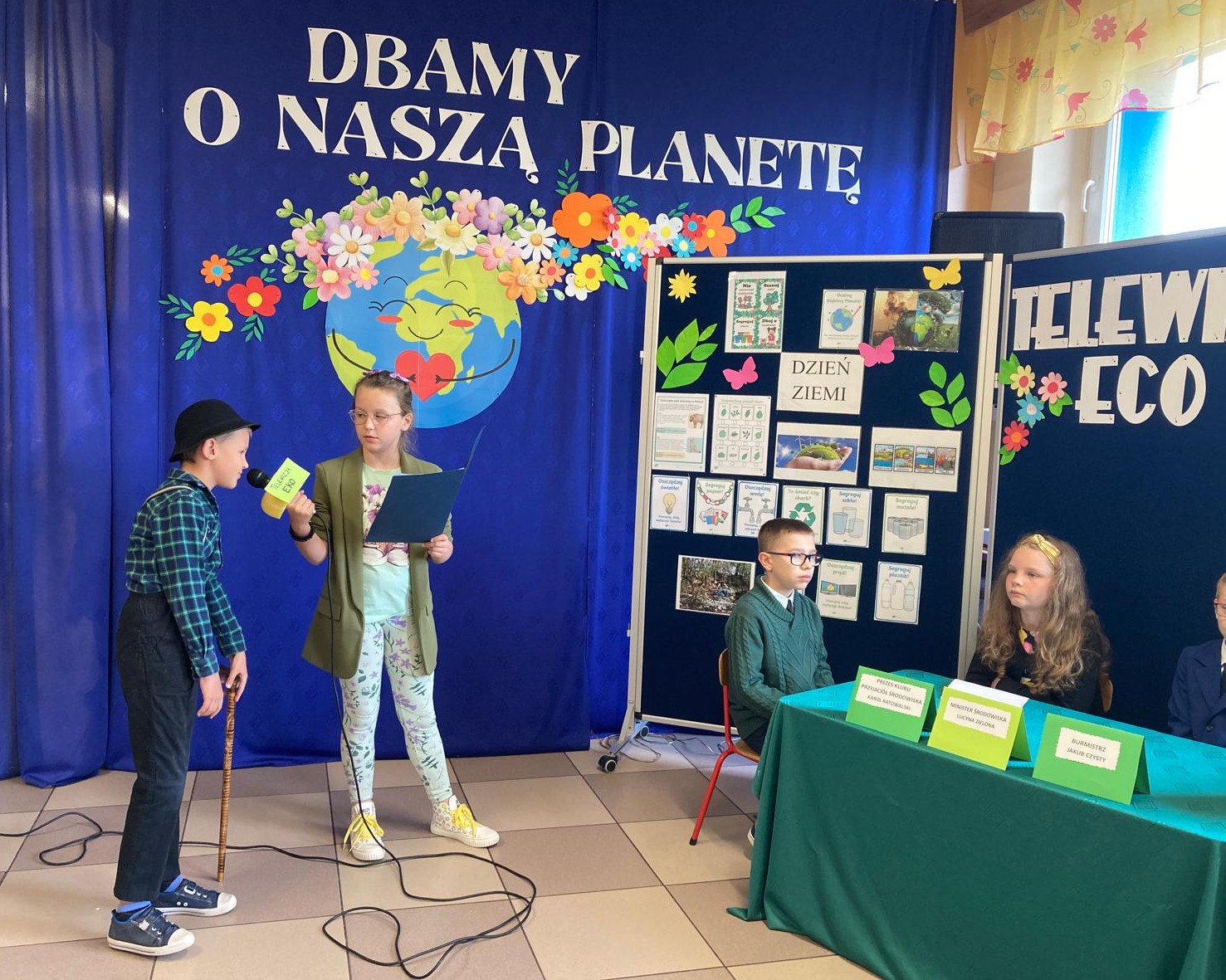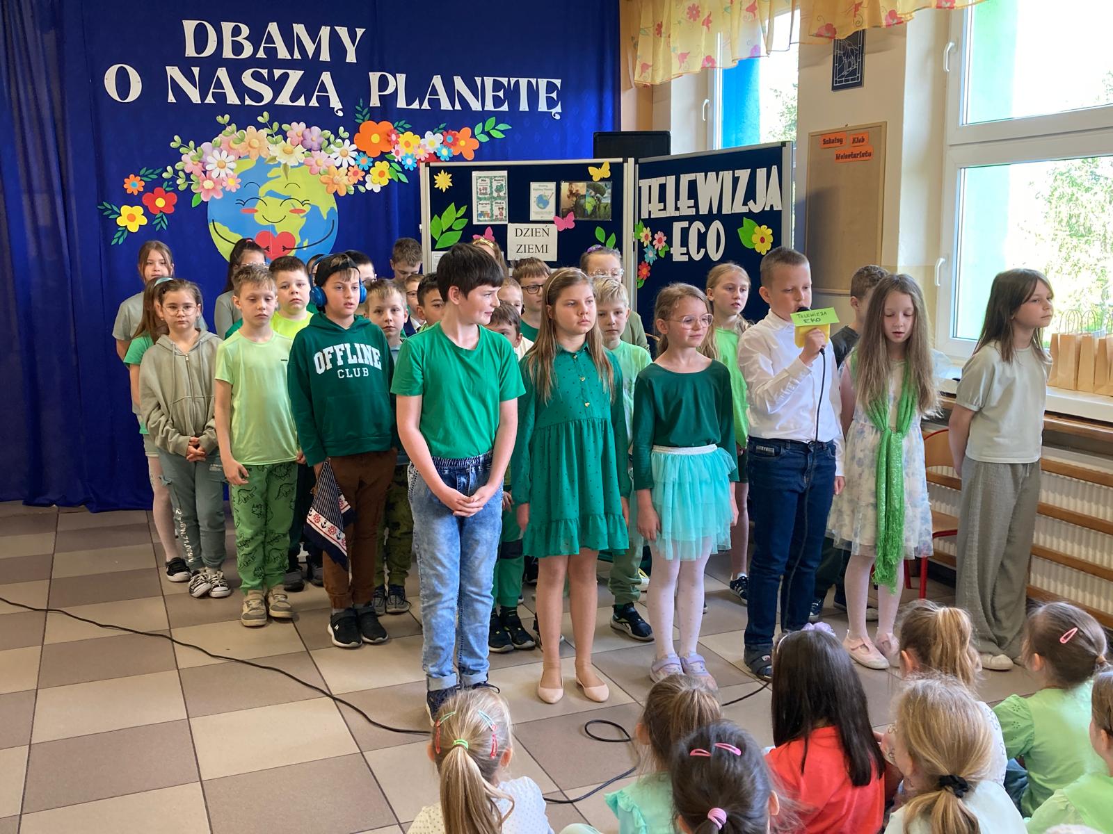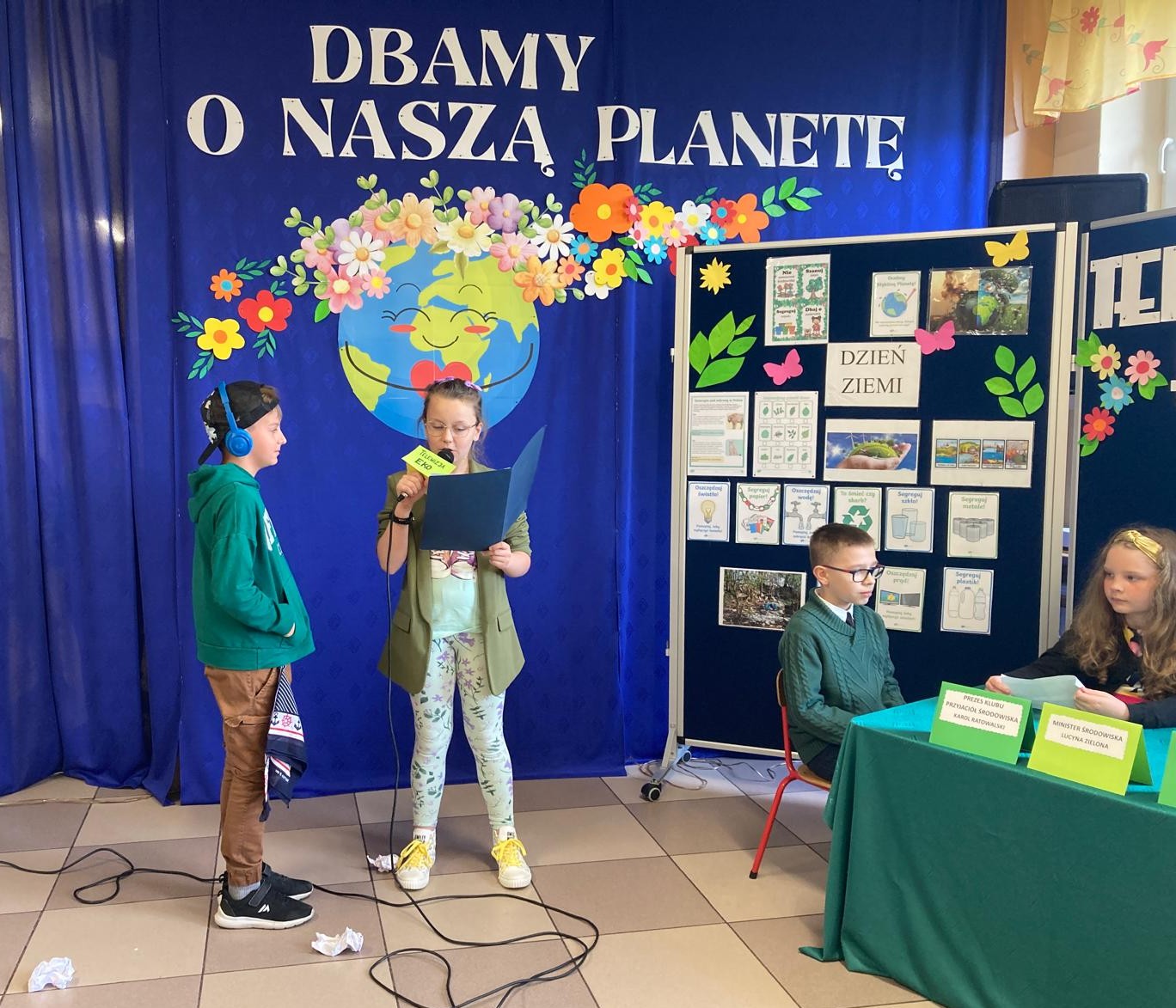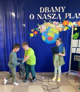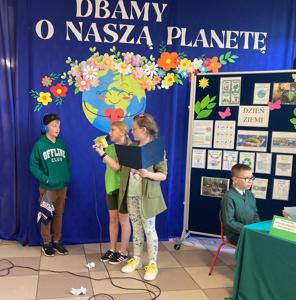 Z okazji Dnia Ziemi ważne przesłania dotyczące proekologicznych zachowań przekazali społeczności szkolnej uczniowie klas II i III.