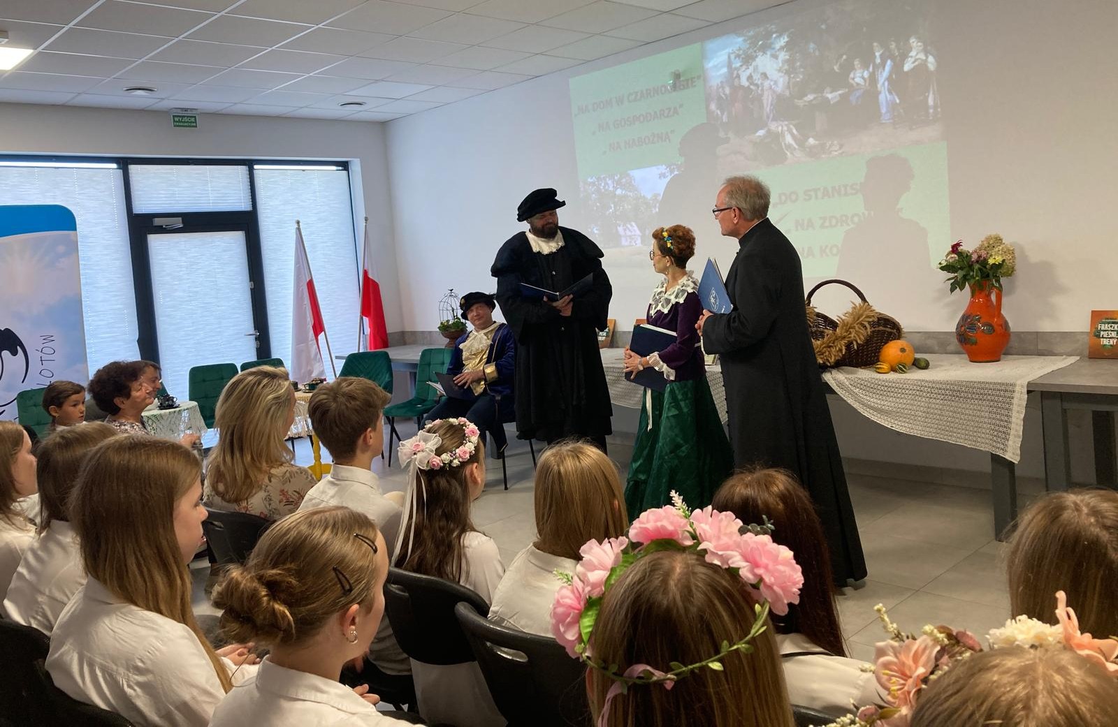 18 września 2025 r. uczniowie klas VII i VIII wraz z polonistami uczestniczyli w „Narodowym Czytaniu 2025” zorganizowanym w Gminnym Centrum Kultury i Usług Społecznych w Drużbicach. Tegoroczna edycja była poświęcona poezji Jana Kochanowskiego. Zebrani wysłuchali utworów mistrza z Czarnolasu, zaprezentowanych przez zaproszonych gości, a także ciekawostek z życia poety. Podsumowaniem wydarzenia był konkurs, w którym rywalizowali uczniowie z trzech gminnych podstawówek. Wszyscy wykazali się wiedzą na temat życia i twórczości renesansowego poety i zostali nagrodzeni okazjonalnymi wydaniami jego utworów. Organizatorem spotkania była Gminna Biblioteka Publiczna w Drużbicach.