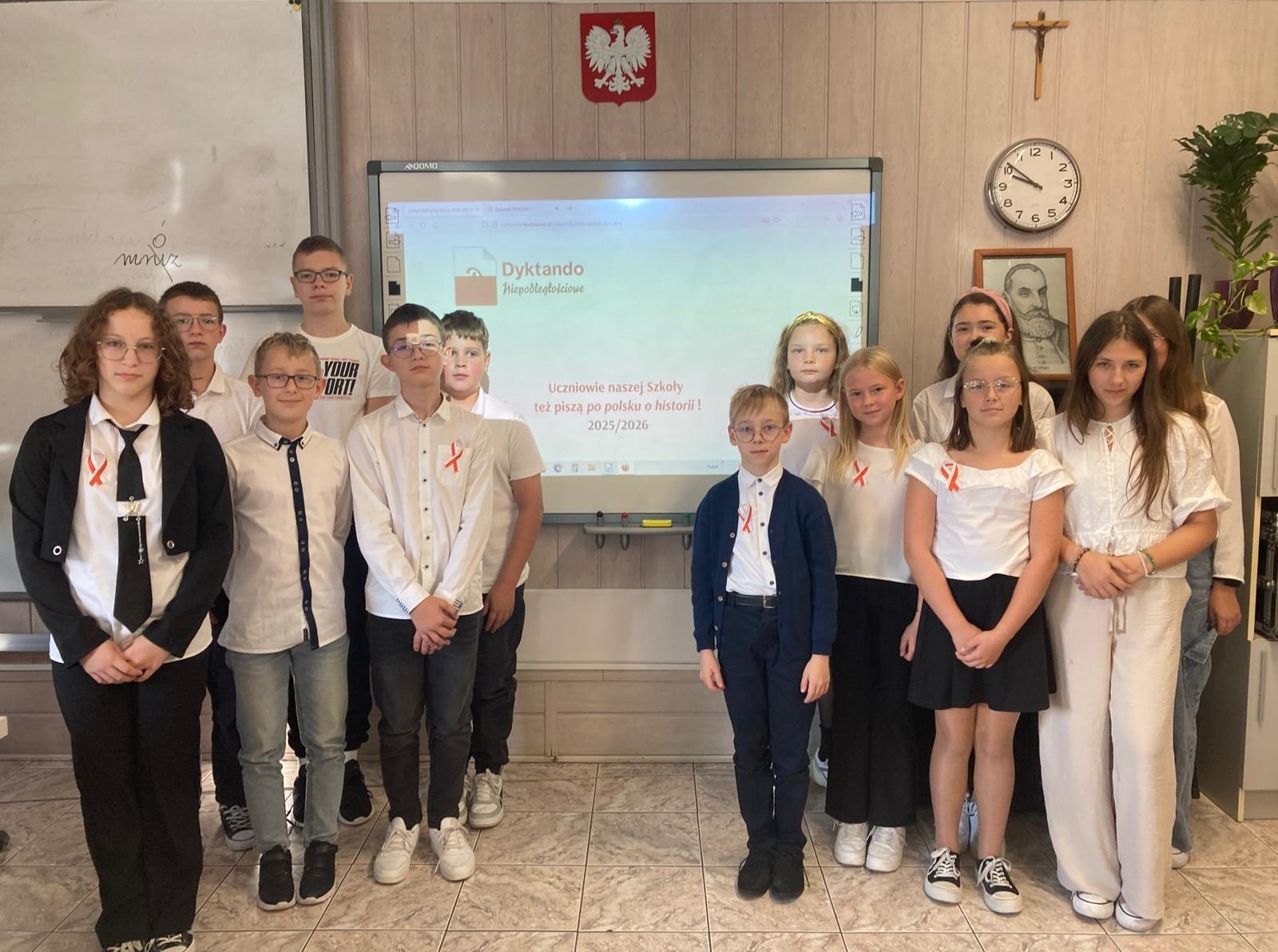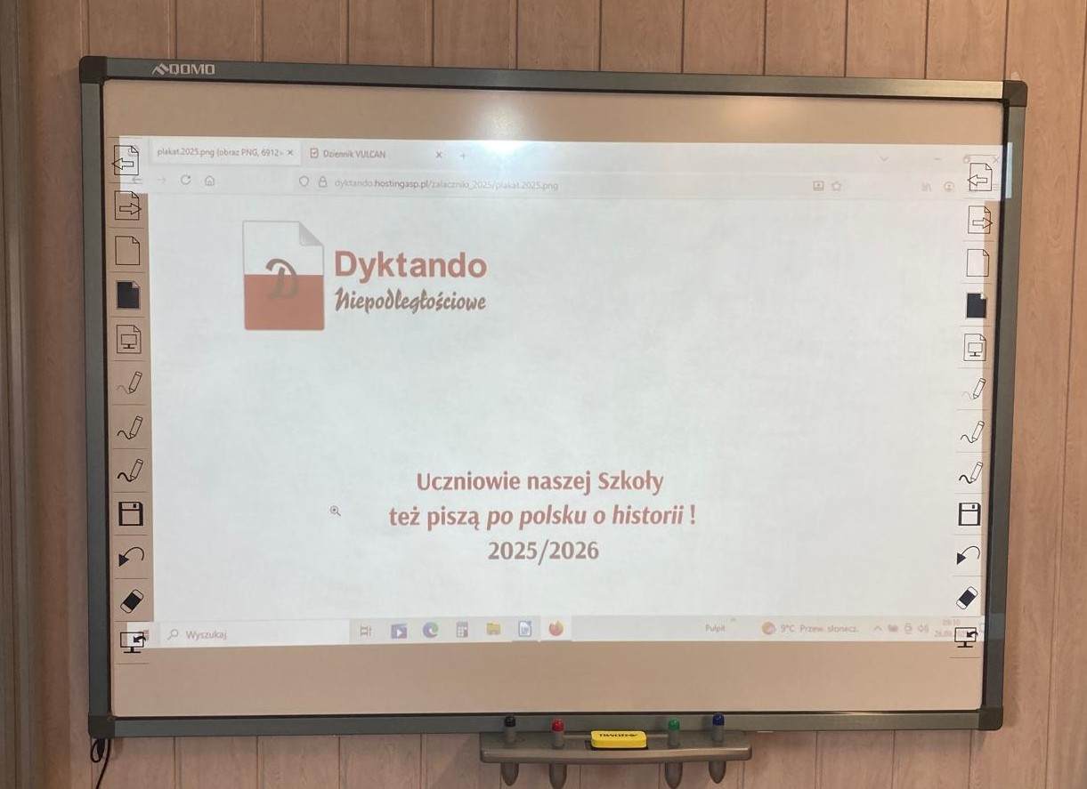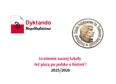 26 września 2025 r. trzynaścioro uczniów z klas IV-VIII naszej szkoły wzięło udział w szkolnym etapie XIII edycji Ogólnopolskiego Dyktanda Niepodległościowego „Po polsku o historii”. Organizatorem konkursu jest Stowarzyszenie Polonistów przy Wydziale Polonistyki UJ, a jego głównym celem popularyzacja wiedzy na temat poprawnej polszczyzny oraz wiedzy z zakresu kultury i historii narodowej.