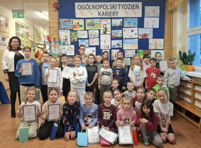 Dla najmłodszych uczniów klas I-III zorganizowano konkurs plastyczny pt. "Kiedy dorosnę, zostanę...". Dzieci mogły wyrazić swoje marzenia zawodowe poprzez rysunek, dzięki czemu rozwijały kreatywność oraz dziecięcą refleksję na temat swojego rozwoju zawodowego.